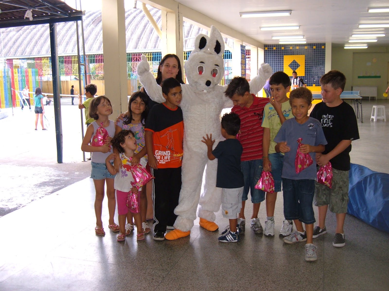 Neste domingo, o Coelhinho esteve presente, animando o dia da criançada, jovens, adultos e idosos também!!!!